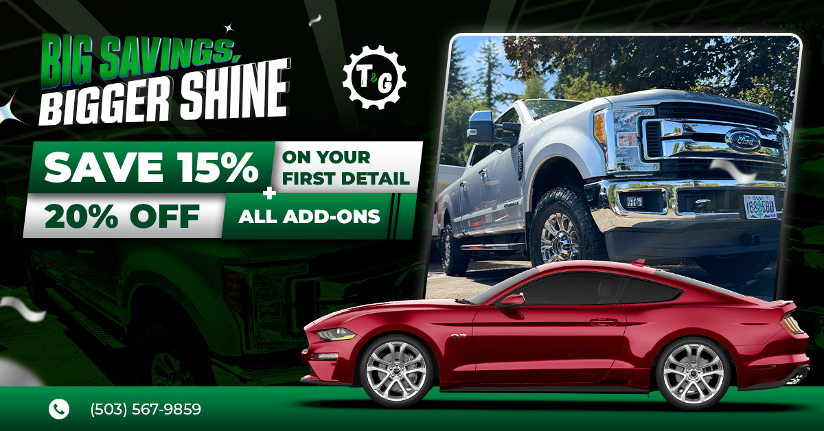 Welcome Deal: Book any package now and SAVE 15% on your first detail plus 20% OFF all add-ons!